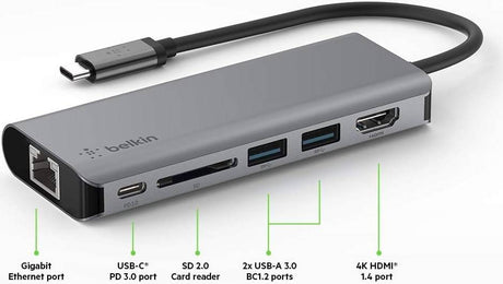 Belkin Connect USB-C 6-in-1 Multiport Adapter, 2x USB3.0/3.1 Type-A, USB3.0/3.1 Type-C,
