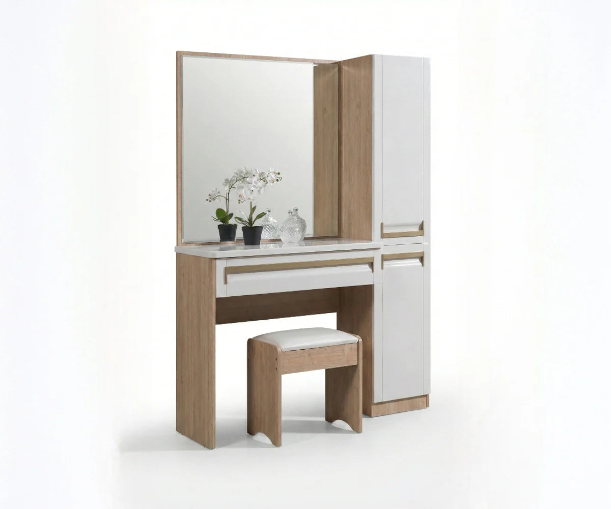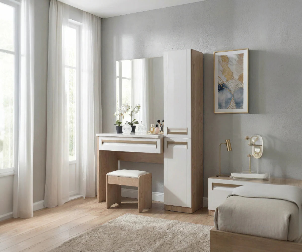| طاولة الزينة | تصميم متناسق مع مرآة وأدراج |