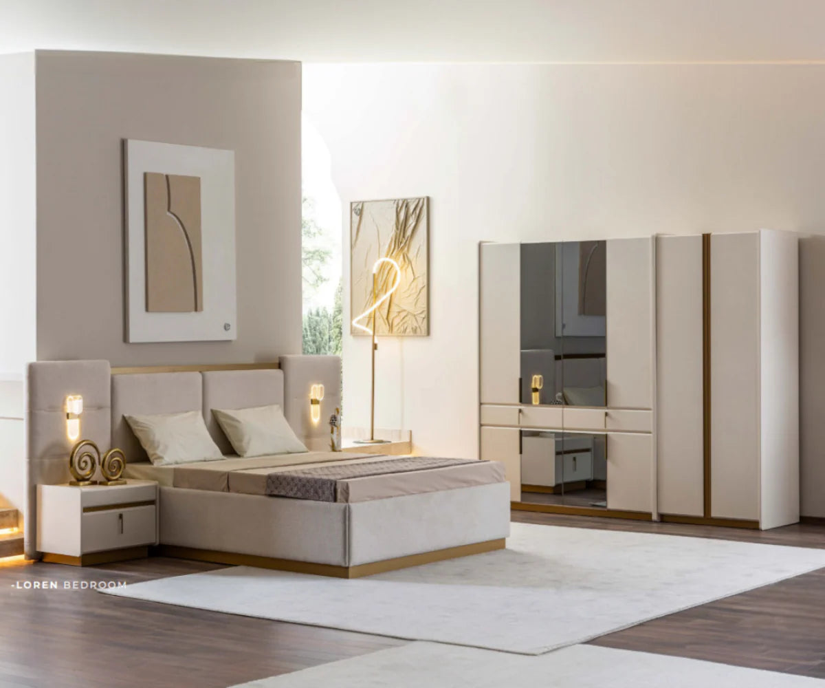 طقم غرفة نوم لورين – 180×200 سم، 6 قطع
