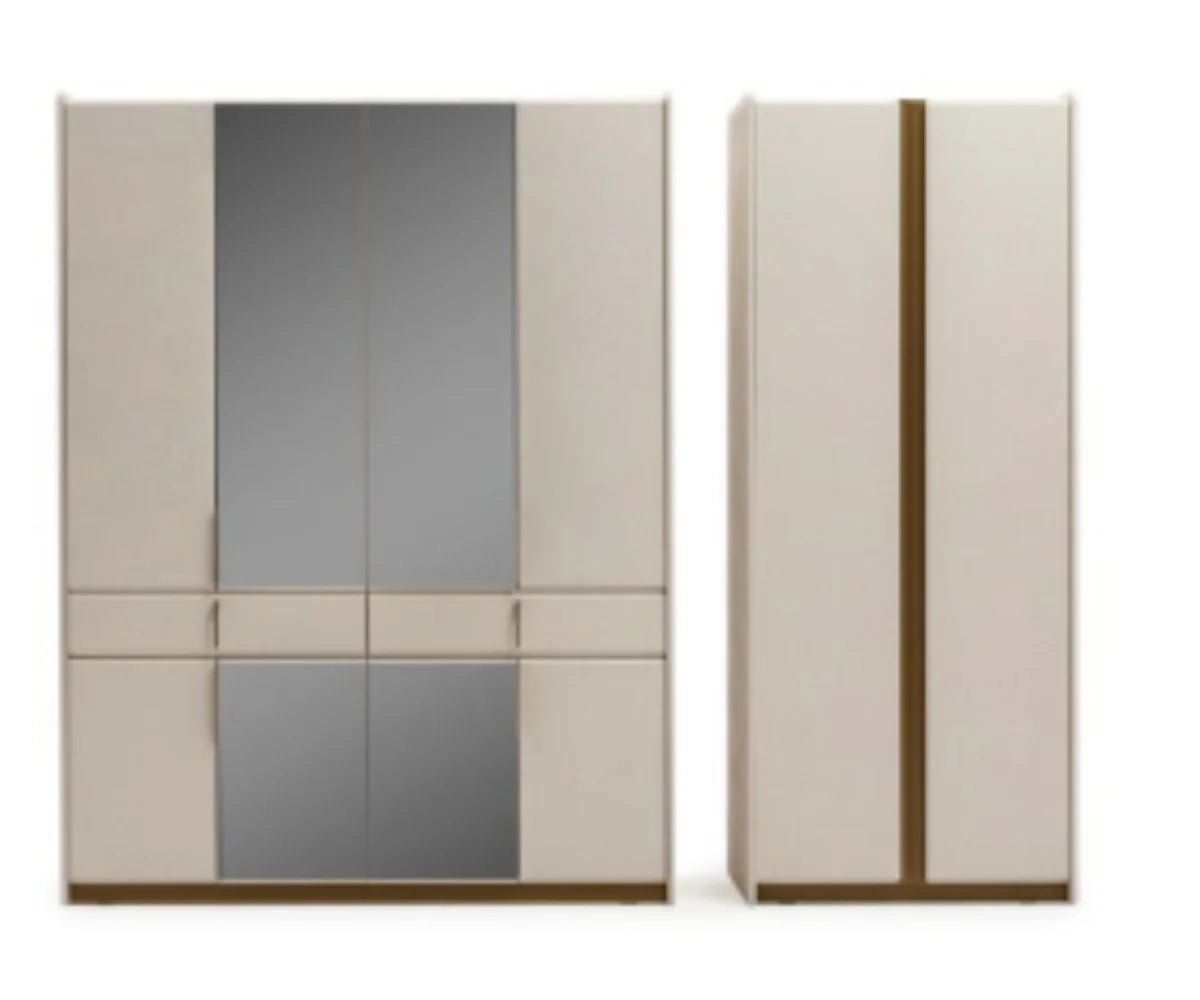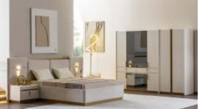 | تتضمن المجموعة | سرير (180×200 سم)، خزانة ملابس، مرآة، مقعد عثماني، خزانة جانبية يمنى، خزانة جانبية يسرى |