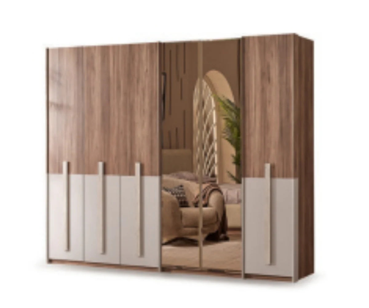 | تتضمن المجموعة | هيكل سرير بحجم كينج، وخزائن ملابس، وطاولات جانبية للسرير، وطاولة تزيين، وربما وحدات تخزين (حدد إن كانت معروفة). |