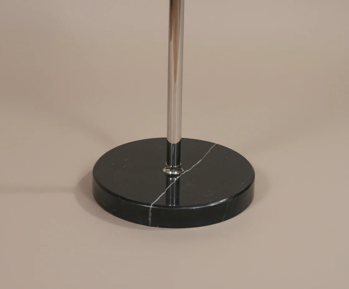 | اللون / اللمسة النهائية | سطح علوي بتأثير الرخام الأبيض، وحامل معدني ذهبي/فضي، وقاعدة من الرخام الأسود |