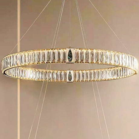 Modern Luxury Silver Brass 2-ring Crystal Led Pendant Lamp
