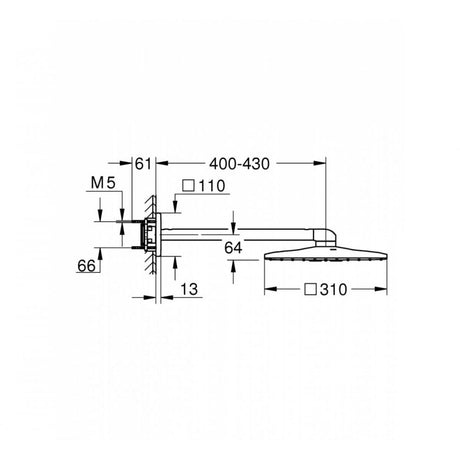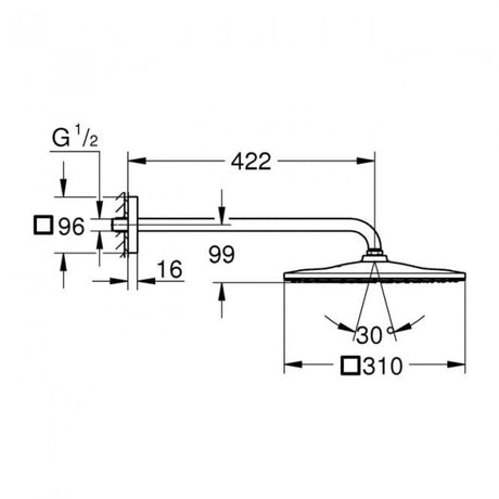Grohe Rainshower Mono Cube Shower Head with Arm – 9.5 Litre, Chrome