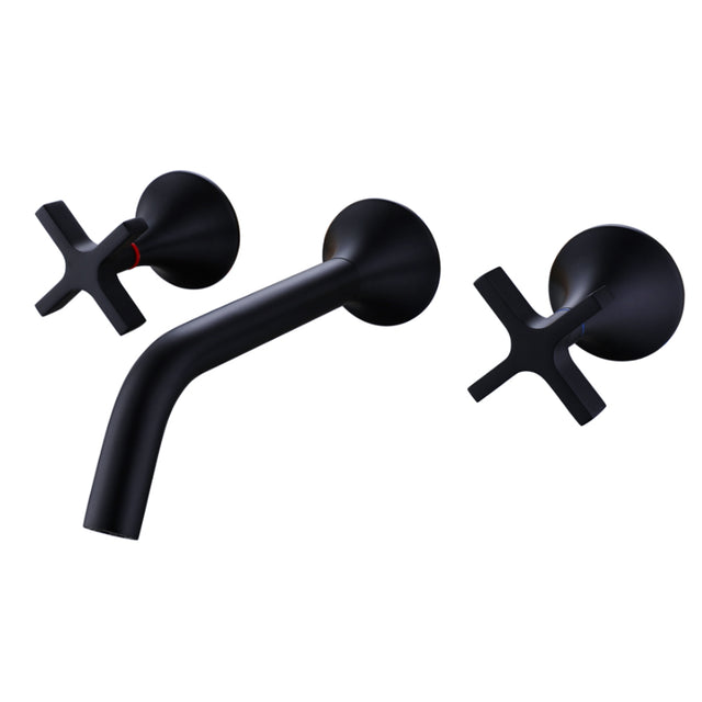 Wall Mounted Two Handle Basin Mixer - Matt Black