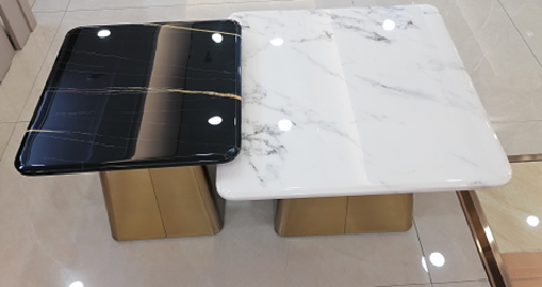 | Material | Tempered glass top with metal (gold-plated or powder-coated) frame |