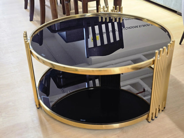 Round Luxury Coffee Table – 803# (Gold & Black Glass, 90×90)