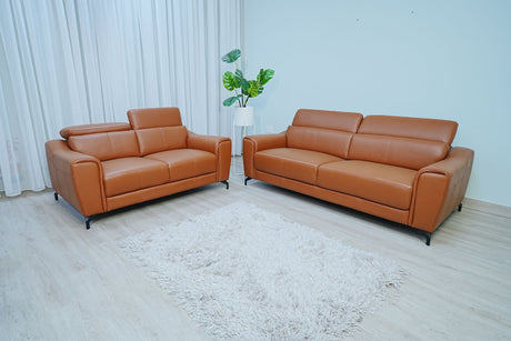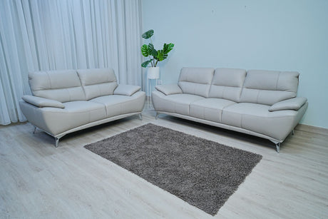Full Leather Sofa Set (Light Grey)