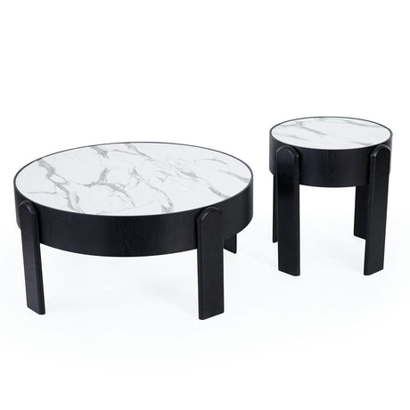 Marble Top Center Table + Side Table Teapoy Combo - Black