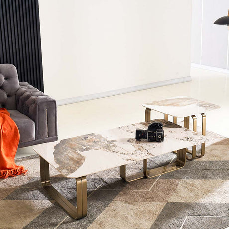 Center Table + Side Table Teapoy Combo - Gold Design