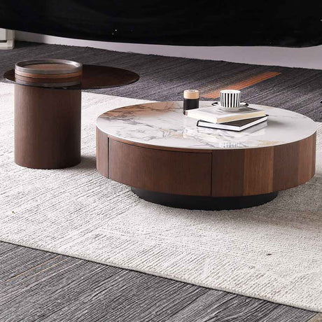 Round Marble Coffee Table With Storage - Y07# (1set-3box)