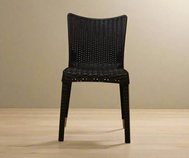 | Material | Synthetic rattan (polypropylene) both seat/back woven over a durable plastic frame and legs |