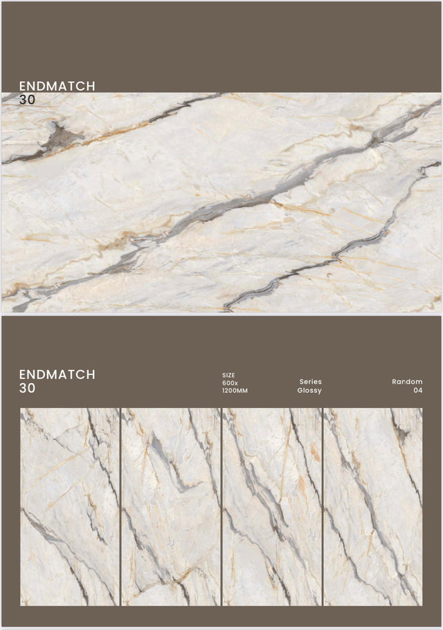 | Color | White background with bold grey and gold marble veins |