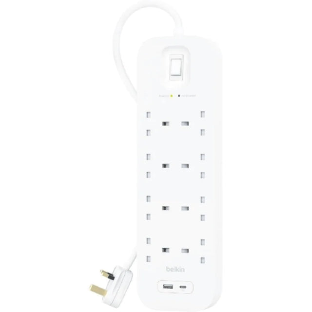 BELKIN | 8-Outlet Surge Protector 18W, Usb-A & Usb-C Ports, 2M Cord