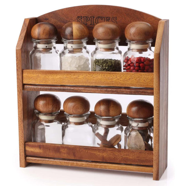 Wooden Spice Rack Set with Glass Bottles