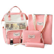 The Girl's 4-Piece Backpack Set in Pink is a stylish and practical choice for school or travel. This set includes a spacious backpack, a matching lunch bag, a pencil case, and a small tote bag, all designed for convenience and organization. The backpack features adjustable padded straps, multiple compartments, and a durable zipper closure. The insulated lunch bag keeps food fresh, while the pencil case and tote provide extra storage. Made from high-quality, lightweight materials, this set is both functional and fashionable. The adorable pink color and cute design make it a perfect gift for girls of all ages.